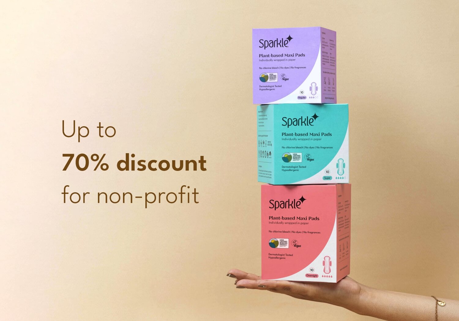 We offer a 70% discount to the non-profit organizations that we work with, so that we can offer sustainable, plant-based period products at a subsizided price.